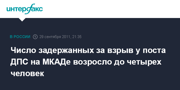 Москва. 29 сентября. INTERFAX.RU - Четверо жителей Москвы и Подмосковья задержаны по подозрению во взрыве на посту ДПС на 22 км МКАД в июне этого года, сообщили "Интерфаксу" в четверг в пресс-службе столичного ГУ МВД России по Москве.
