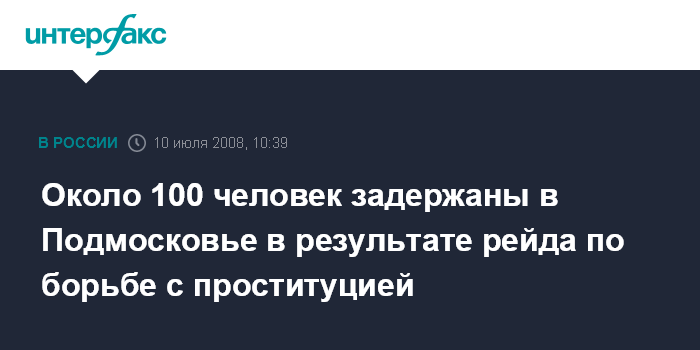 Около 100 человек задержаны в Подмосковье в результате рейда по борьбе с проституцией