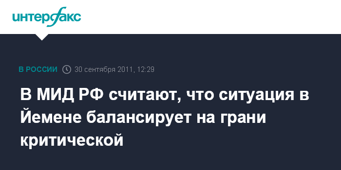 В МИД РФ считают, что ситуация в Йемене балансирует на грани критической