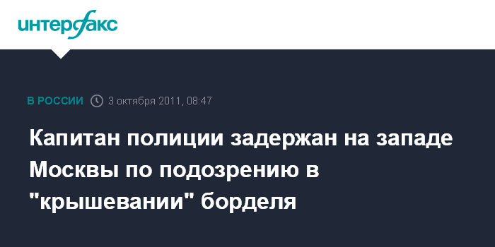 Капитан полиции задержан на западе Москвы по подозрению в "крышевании" борделя