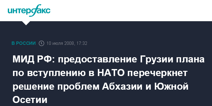 МИД РФ: предоставление Грузии плана по вступлению в НАТО перечеркнет решение проблем Абхазии и Южной Осетии