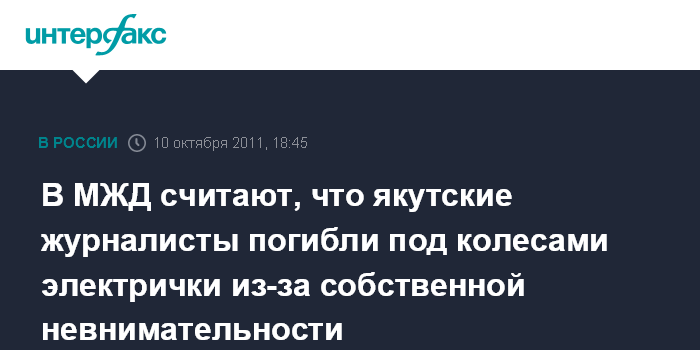 В МЖД считают, что якутские журналисты погибли под колесами электрички из-за собственной невнимательности