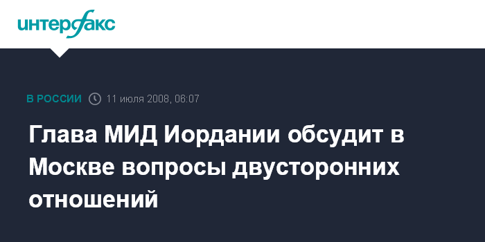Москва. 11 июля. ИНТЕРФАКС - Подготовку предстоящего визита в Россию короля Иордании Абдаллы Второго обсудит в пятницу в Москве глава иорданского МИД Салахеддин аль-Башир, прибывший в четверг в российскую столицу.