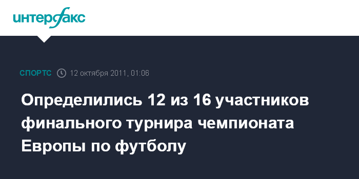 Москва. 12 октября. ИНТЕРФАКС - По итогам завершившегося во вторник квалификационного раунда Евро-2012 стали известны 12 участников финальной стадии турнира.