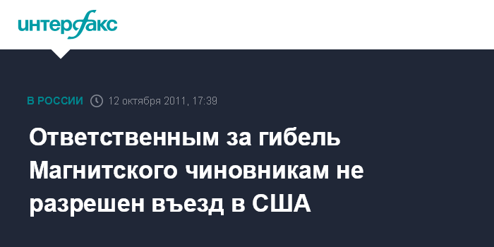 Москва. 12 октября. INTERFAX.RU - Администрация США не поддержит "черный список" Конгресса в связи с делом Сергея Магнитского, однако некоторым российским чиновникам, причастным к его гибели, въезд в страну будет запрещен.
