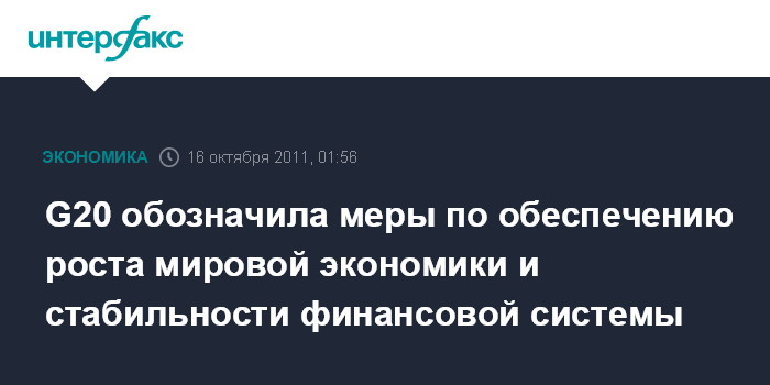 G20 обозначила меры по обеспечению роста мировой экономики и стабильности финансовой системы