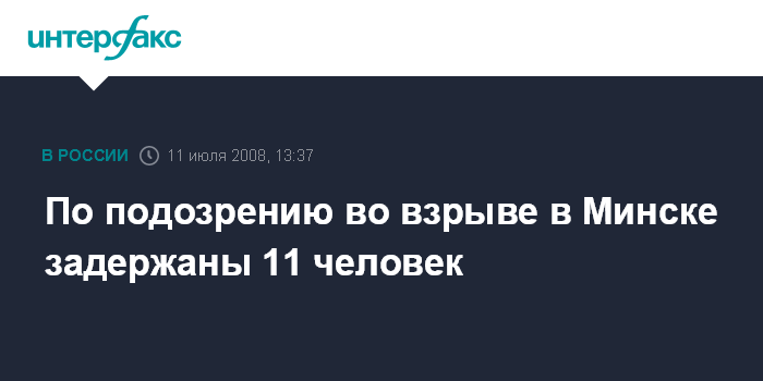 Москва. 11 июля. INTERFAX.RU – По подозрению в причастности к взрыву на проспекте Победителей в Минске 4 июля задержано 11 человек, заявил в пятницу в Минске на пресс- конференции в штаб-квартире праворадикальной организации Белорусский народный фронт известный в белорусских оппозиционных кругах правозащитник Валентин Стефанович.