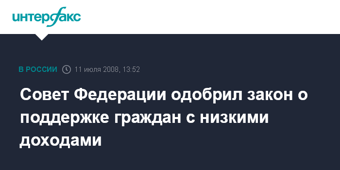 Совет Федерации одобрил закон о поддержке граждан с низкими доходами