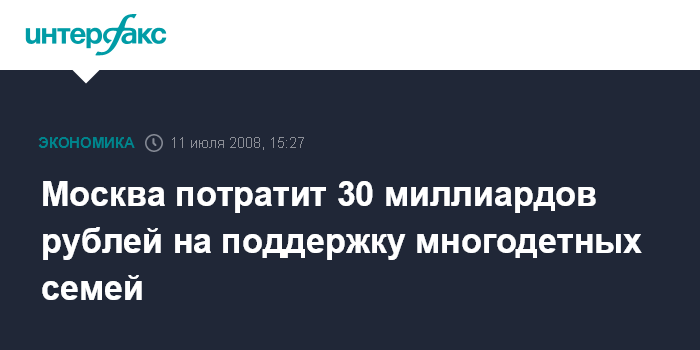 Москва потратит 30 миллиардов рублей на поддержку многодетных семей