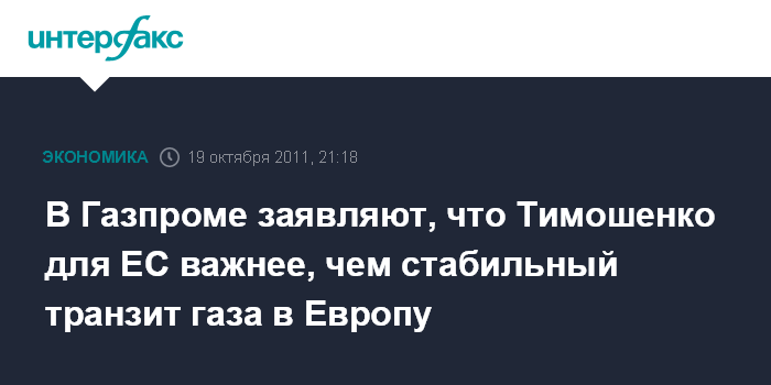 В Газпроме заявляют, что Тимошенко для ЕС важнее, чем стабильный транзит газа в Европу