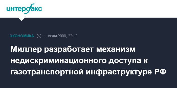 Северодвинск. 11 июля. ИНТЕРФАКС - Главе "Газпрома" Алексею Миллеру поручено разработать механизм недискриминационного доступа к газотранспортной инфраструктуре.