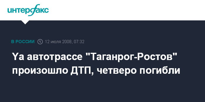 Ростов-на-Дону. 12. июля. ИНТЕРФАКС-ЮГ Лобовое столкновение двух автомобилей ВАЗ произошло минувшей ночью на автотрассе "Таганрог-Ростов", погибли четыре человека.