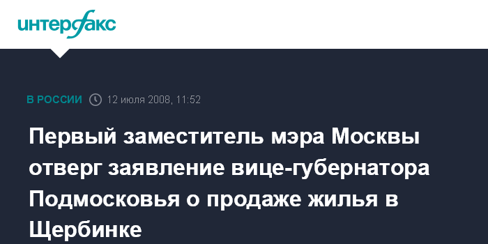 Первый заместитель мэра Москвы отверг заявление вице-губернатора Подмосковья о продаже жилья в Щербинке