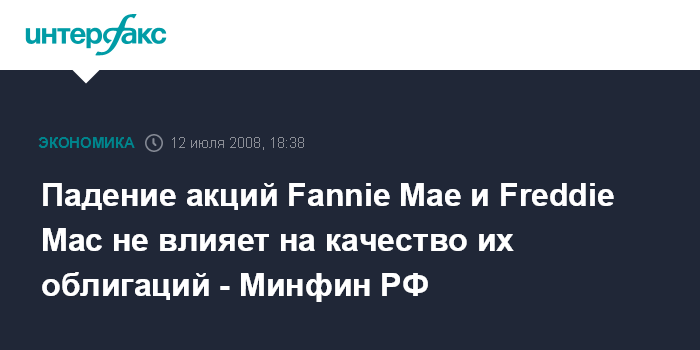 Падение акций Fannie Mae и Freddie Mac не влияет на качество их облигаций - Минфин РФ