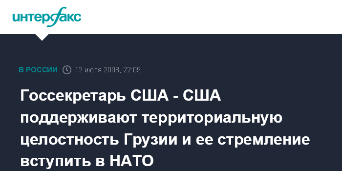 Госсекретарь США - США поддерживают территориальную целостность Грузии и ее стремление вступить в НАТО