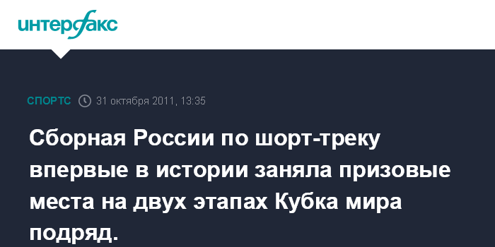 Москва. 31 октября. INTERFAX.RU - Сборная России по шорт-треку впервые в истории привезла медали с двух этапов Кубка мира подряд.
