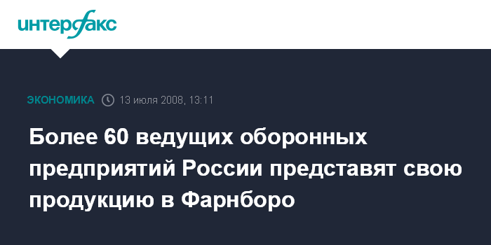 Более 60 ведущих оборонных предприятий России представят свою продукцию в Фарнборо