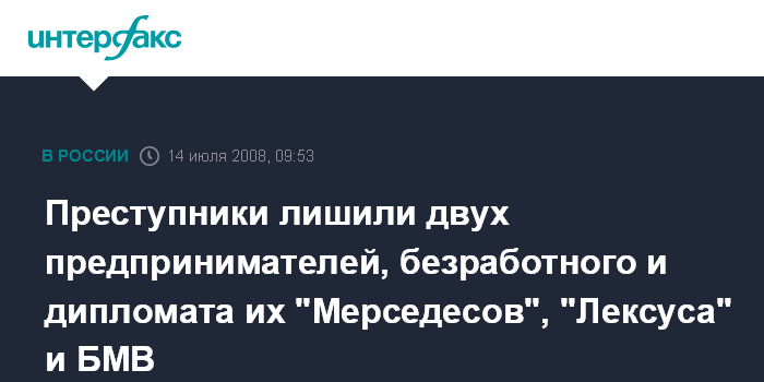 Преступники лишили двух предпринимателей, безработного и дипломата их "Мерседесов", "Лексуса" и БМВ