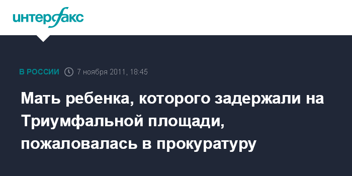 Москва. 7 ноября. INTERFAX.RU - Жена активиста незарегистрированной партии "Другая Россия" Сергея Аксенова Анастасия Пустарнакова просит прокуратуру проверить законность действий полиции, которая 1 ноября задержала и опросила ее шестилетнего сына Ивана.