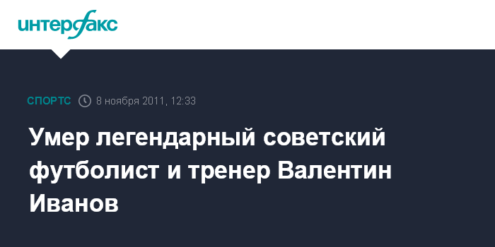 Москва. 8 ноября. INTERFAX.RU - На 77-м году жизни скончался легендарный советский футболист и тренер Валентин Иванов, сообщает официальный сайт Российского футбольного союза (РФС).