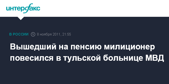 Тула. 8 ноября. INTERFAX.RU - В медсанчасти УМВД по Тульской области найден мертвым бывший сотрудник правоохранительных органов, ушедший на пенсию.