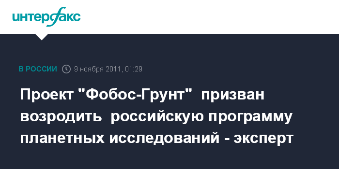Проект "Фобос-Грунт" призван возродить российскую программу планетных исследований - эксперт