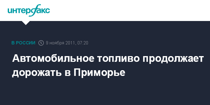 Владивосток. 9 ноября. ИНТЕРФАКС-ДАЛЬНИЙ ВОСТОК - В последние три недели на автозаправочных станциях Приморья несколько раз сменились ценники на топливо.