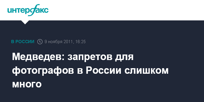 "Наша проблема в том, что таких мест (где запрещено фотографировать - ИФ) слишком много. Те, кто следит за порядком, порой избыточно опекают фотографов", - сказал Д.Медведев в среду на встрече со своими сторонниками - представителями сетевых сообществ.