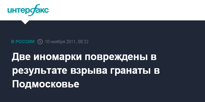 Москва. 10 ноября. INTERFAX.RU - В подмосковном Щелково мужчина взорвал гранату РГД-5, повредив припаркованные у дома по улице Космодемьянская автомобили, сообщил в четверг "Интерфаксу" источник в правоохранительных органах.