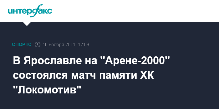 Москва. 10 ноября. INTERFAX.RU - В Ярославле при аншлаге на "Арене-2000" 9 ноября состоялся матч памяти хоккейной команды "Локомотив", сообщает официальный сайт КХЛ.