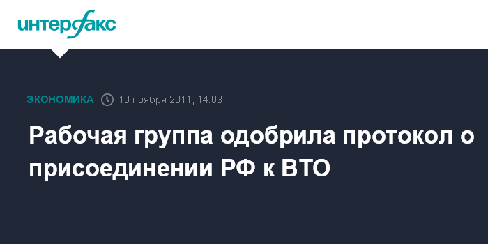Рабочая группа одобрила протокол о присоединении РФ к ВТО