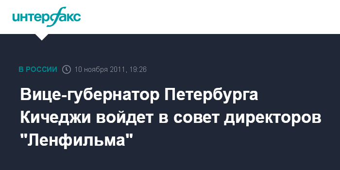 Санкт-Петербург. 10 ноября. INTERFAX.RU - Губернатор Санкт-Петербурга Георгий Полтавченко обратился с ходатайством к министру культуры РФ Александру Авдееву о включении в состав совета директоров ОАО "Киностудия "Ленфильм" вице-губернатора северной столицы Василия Кичеджи.