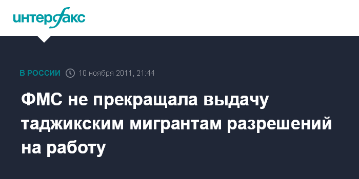 Москва.10 ноября. INTERFAX.RU - В Федеральной миграционной службе не подтверждают информацию о том, что Россия приостановила выдачу разрешений на работу для трудовых мигрантов из Таджикистана.