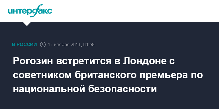 Рогозин встретится в Лондоне с советником британского премьера по национальной безопасности