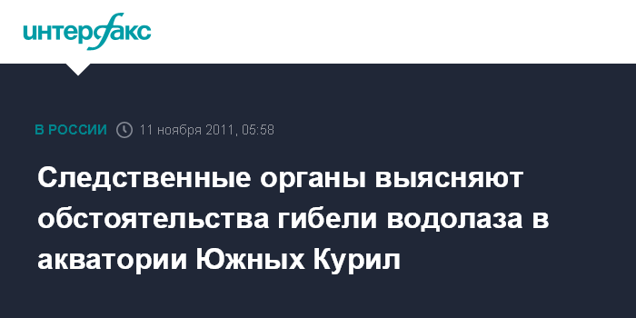 Южно-Сахалинск. 11 ноября. ИНТЕРФАКС-ДАЛЬНИЙ ВОСТОК - Уголовное дело по факту гибели на Курилах водолаза возбуждено по ч. 1 ст. 109 УК РФ Дальневосточным следственным управлением на транспорте СКР, сообщает пресс-служба ведомства.