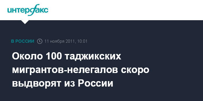 Москва. 11 ноября. INTERFAX.RU - Федеральная миграционная служба заявила, что процедура выдворения с российской территории около ста таджикских мигрантов-нелегалов завершится в ближайшее время.
