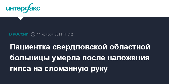 Пациентка свердловской областной больницы умерла после наложения гипса на сломанную руку