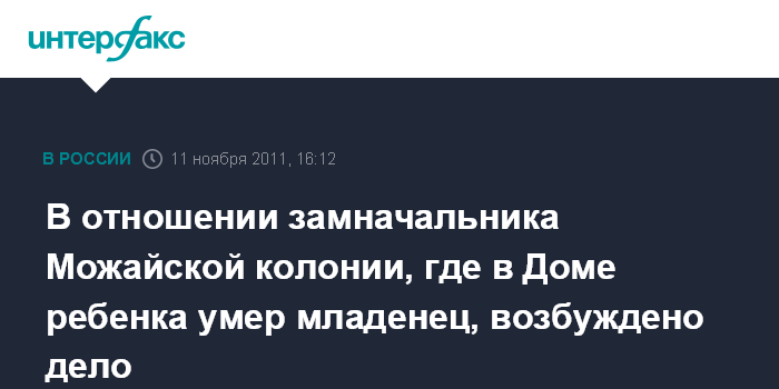 В отношении замначальника Можайской колонии, где в Доме ребенка умер младенец, возбуждено дело