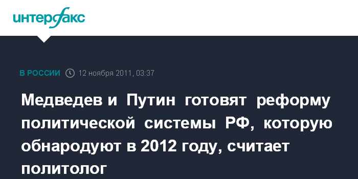 Медведев и Путин готовят реформу политической системы РФ, которую обнародуют в 2012 году, считает политолог