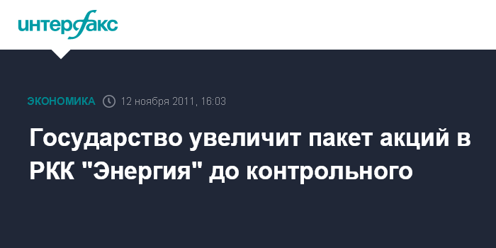 Байконур. 12 ноября. INTERFAX.RU - Государство получит контрольный пакет акций в Ракетно-космической корпорации "Энергия" после присоединения к ней НПО "Энергомаш", сообщил журналистам на космодроме Байконур президент и генеральный конструктор РКК "Энергия" Виталий Лопота.