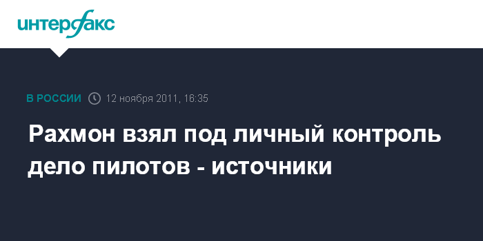 Душанбе. 12 ноября. INTERFAX.RU - Президент Таджикистана Эмомали Рахмон взял под личный контроль дело пилотов российской авиакомпании Rolkan Investments Ltd., приговоренных таджикским судом к длительному заключению, сообщили "Интерфаксу" в субботу высокопоставленные источники в правительственных кругах. "Э.Рахмон заслушал доклады всех руководителей силового блока, в том числе главу Госкомитета нацбезопасности республики (ГКНБ) Саймумина Ятимова", - сообщил один из источников.