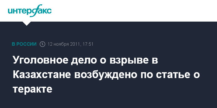 Астана. 12 ноября. INTERFAX.RU - Заведены уголовные дела в связи с перестрелкой и взрывом в казахстанском Таразе, сообщил заместитель Генпрокурора республики Нурмуханбет Исаев. "Уголовные дела возбуждены по факту убийства и совершения террористических актов", - сказал он на брифинге в субботу. "Квалификация всего произошедшего - это дело последующего времени. А сейчас для наших сотрудников самое главное - еще раз разобраться в тонкостях", - заявил Н.Исаев.