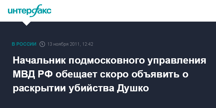 Начальник подмосковного управления МВД РФ обещает скоро объявить о раскрытии убийства Душко