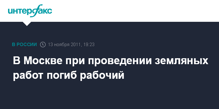 Москва. 13 ноября. INTERFAX.RU - Рабочий погиб в результате обвала грунта на западе Москвы, сообщил "Интерфаксу" источник в правоохранительных органах.