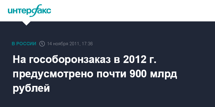 На гособоронзаказ в 2012 г. предусмотрено почти 900 млрд рублей