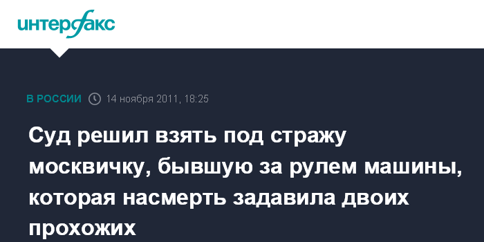 Суд решил взять под стражу москвичку, бывшую за рулем машины, которая насмерть задавила двоих прохожих