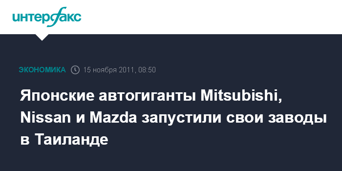 Японские автогиганты Mitsubishi, Nissan и Mazda запустили свои заводы в Таиланде