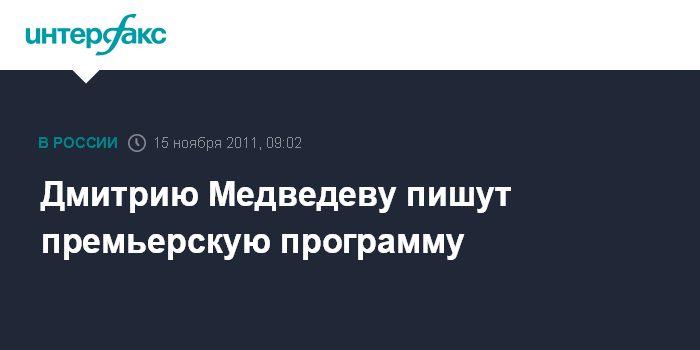 Москва. 15 ноября. INTERFAX.RU - Для будущей премьерской работы президента РФ Дмитрия Медведева пишется программа, которая может пригодиться уже в декабре, сообщают "Ведомости" во вторник.