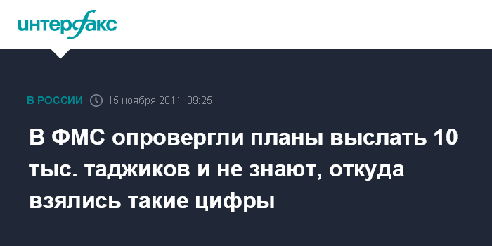 Москва. 15 ноября. INTERFAX.RU - В руководстве Федеральной миграционной службы (ФМС) опровергают информацию о том, что из России планируется выдворить 10 тыс. таджикских мигрантов.