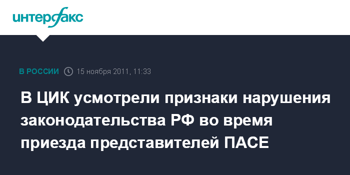 Москва. 15 ноября. INTERFAX.RU - Центральная избирательная комиссия РФ обратилась в Генпрокуратуру и МИД РФ в связи с нарушениями российского законодательства со стороны представителей "пятерки" ПАСЕ, недавно посетивших Россию.